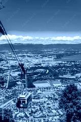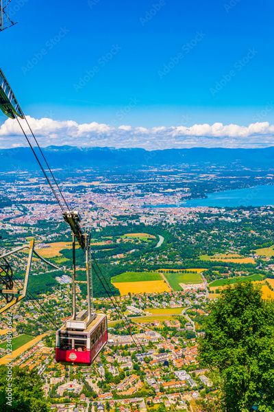 Cabin lift arriving to the top of Mont Saleve near Geneva lake, Switzerland