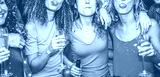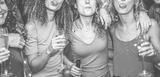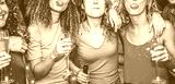 Young women dancing and driking champagne at weekend party night