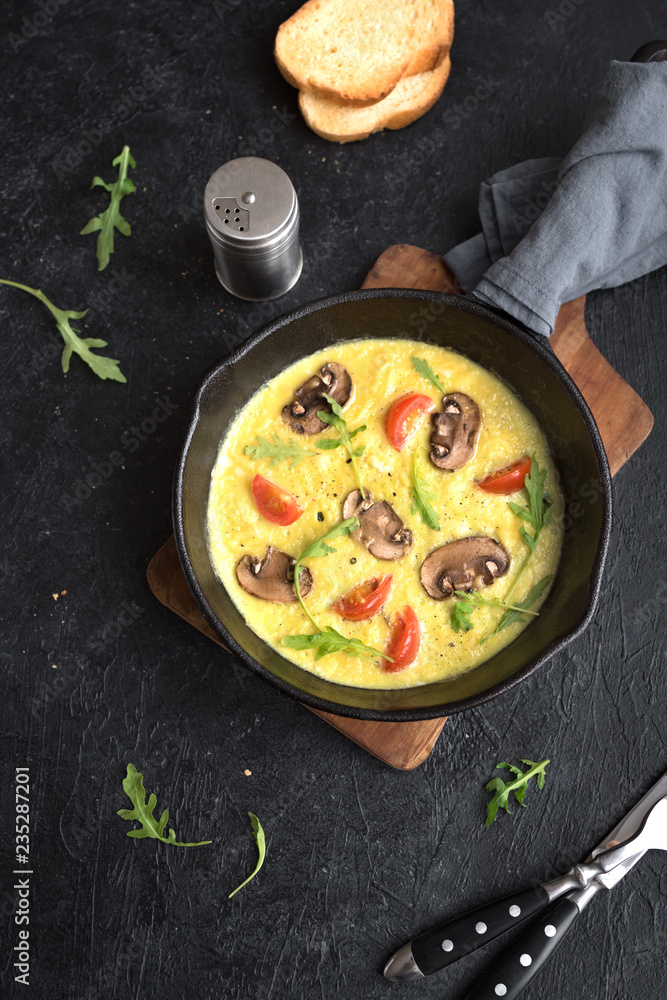 Omelette with mushrooms and vegetables
