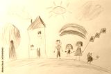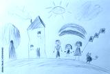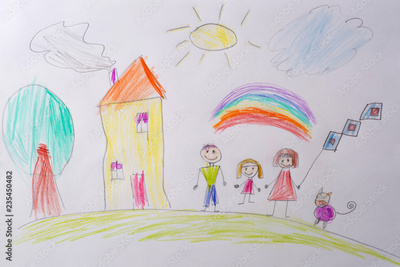 Children's drawing My Happy Family . The concept of child psychology. Psychological testing of the child using the picture.