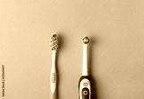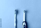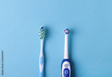 electric and classic toothbrush on a blue background