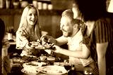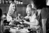 Friends having dinner at restaurant. Multi ethnic group.