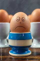 Sad Emotion Individual Concept Boiled Eggs in Egg Cups