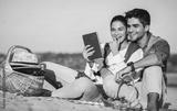 Beautiful young couple having fun on the beach. Lifestyle, love, dating, vacation concept