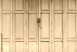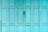 Closed green or blue wooden door. Vintage front door abstract background. Abandoned old house. Old wooden door texture.