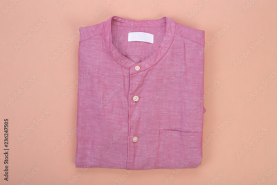 Folded pink casual shirt Mandarin collar on orange pastel background