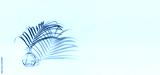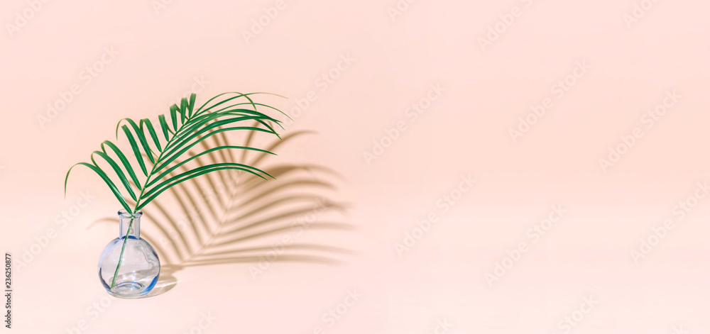 Minimal pure composition with palm leaf in a vase on pastel background.