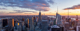 Amazing panorama view of New York city skyline and skyscraper at sunset. Beautiful night view in Midtown Manhatton.