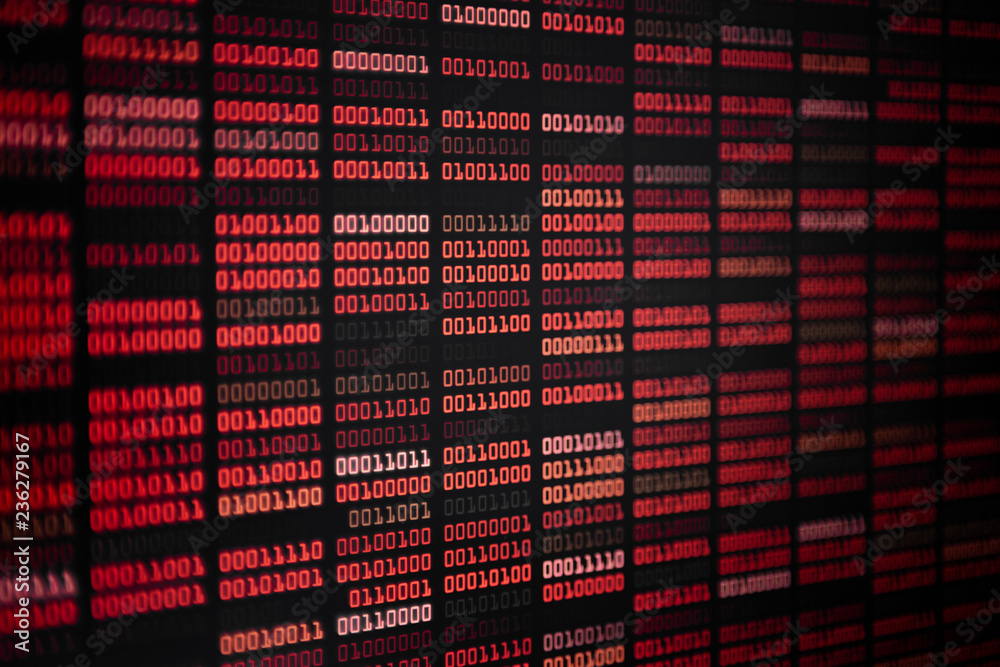 red binary code. data black out some data missing from system. server failure and computer hacker attack. hard disk and harddrive problem. malfunction and danger to use cyber data.