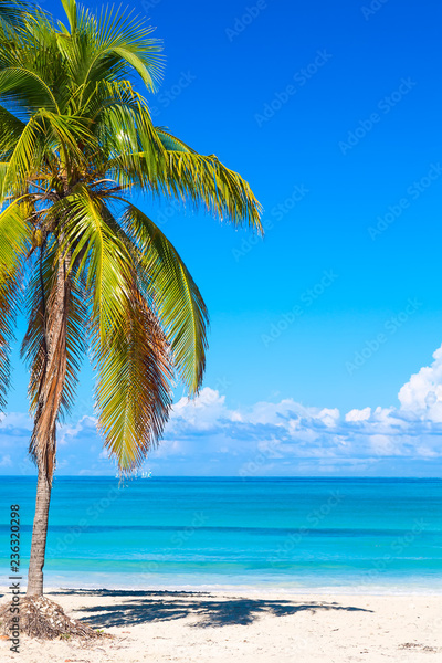 Vacation holidays background wallpaper. Palm and tropical beach in Varadero, Cuba.