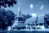 View of Wat Phra That Chom Kitti an ancient pagoda in Chiang Saen district of Chiang Rai province of Thailand.