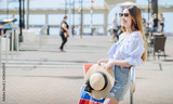 Portrait of happy Asian woman shopping in Napier the beautiful art deco town of Hawke's Bay region, New Zealand.