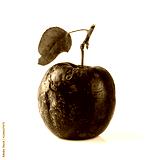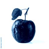 Rotten apple on a white background. Concept of disease, degradation, malignant tumor.