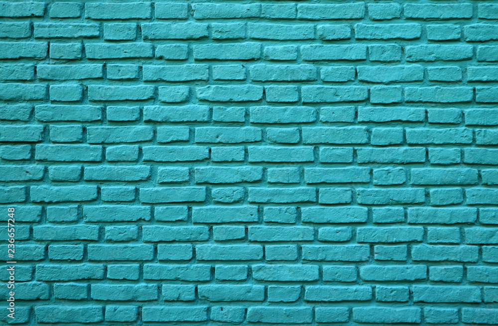 Turquoise Colored Brick Wall at La Boca in Buenos Aires of Argentina for Background, Texture or Pattern