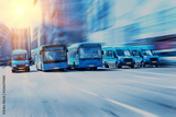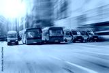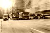 buses move along a multi-lane avenue in the city