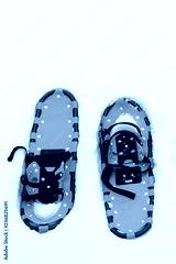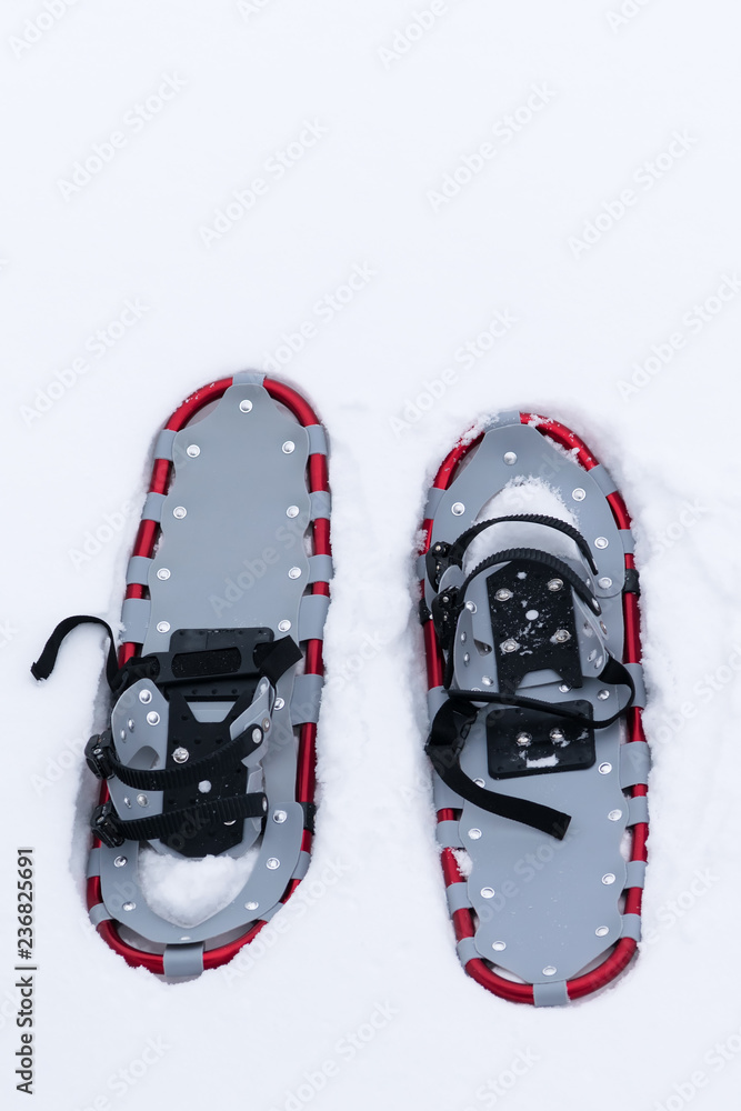 snow boots on white background of pure snow