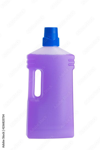 purple bottle with means for cleaning and disinfection, isolated on white