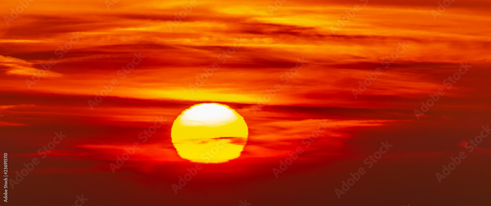 panorama of the sky at sunrise with a solar disk