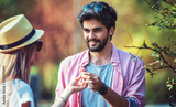 Couple at the meeting. Romantic couple in the city park. Love, dating, romance