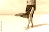 Beach legs bikini body woman walking on caribbean holiday destination with pink skirt fashion beachwear sun tanning relaxing in sun.