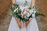bride holding a bouquet of flowers in a rustic style, wedding bouquet. Soft focus