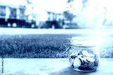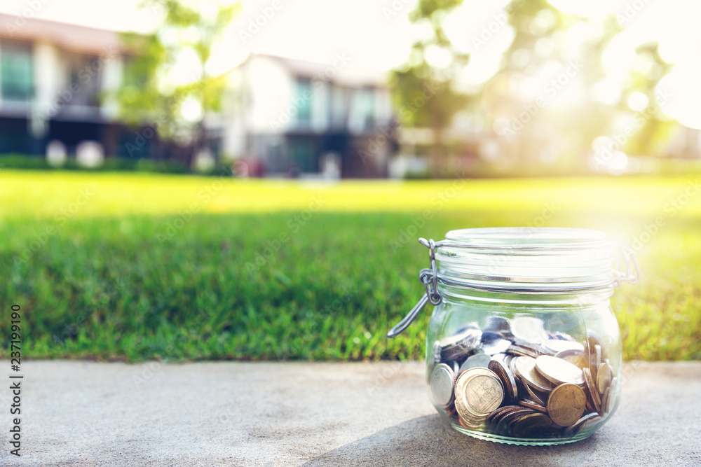 Money in glass jar for home loan