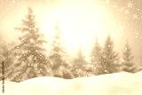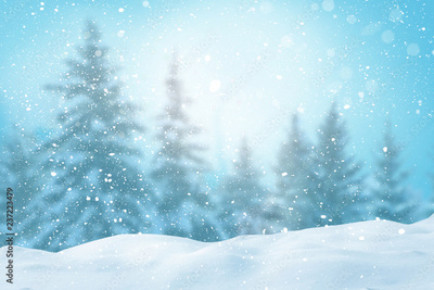 Merry Christmas and happy new year greeting card. Winter landscape with snow .Christmas background with fir tree branch and cones