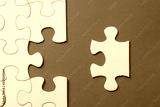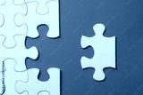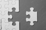 Unfinished white jigsaw puzzle pieces on red background