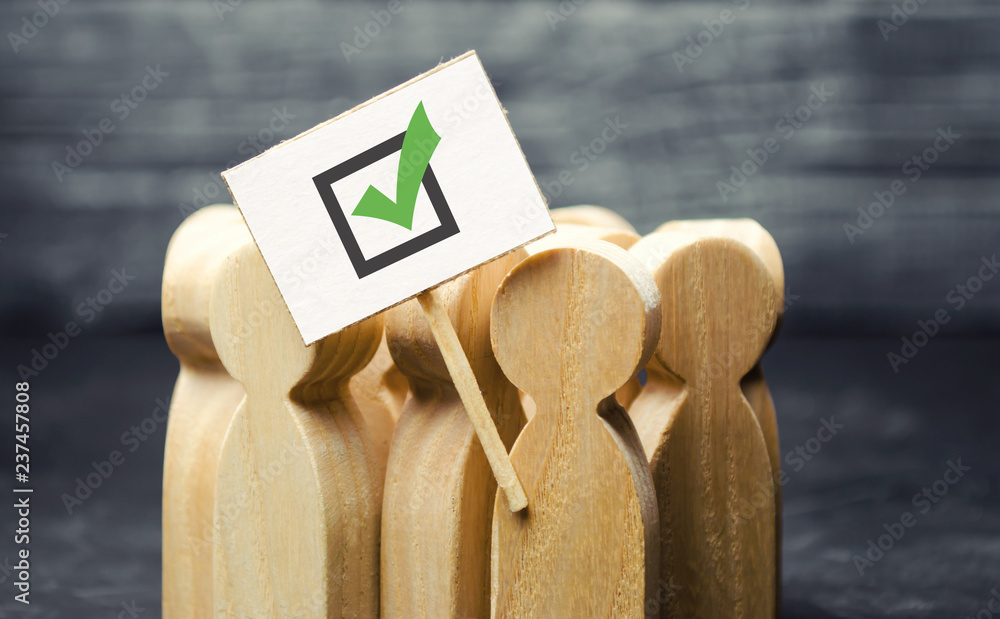 Crowd of people with a poster marching to protest. Agitation, referendum, poll. Voting in a democratic election. against the system Voters, the political process. Political movement, faction, party.