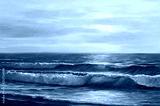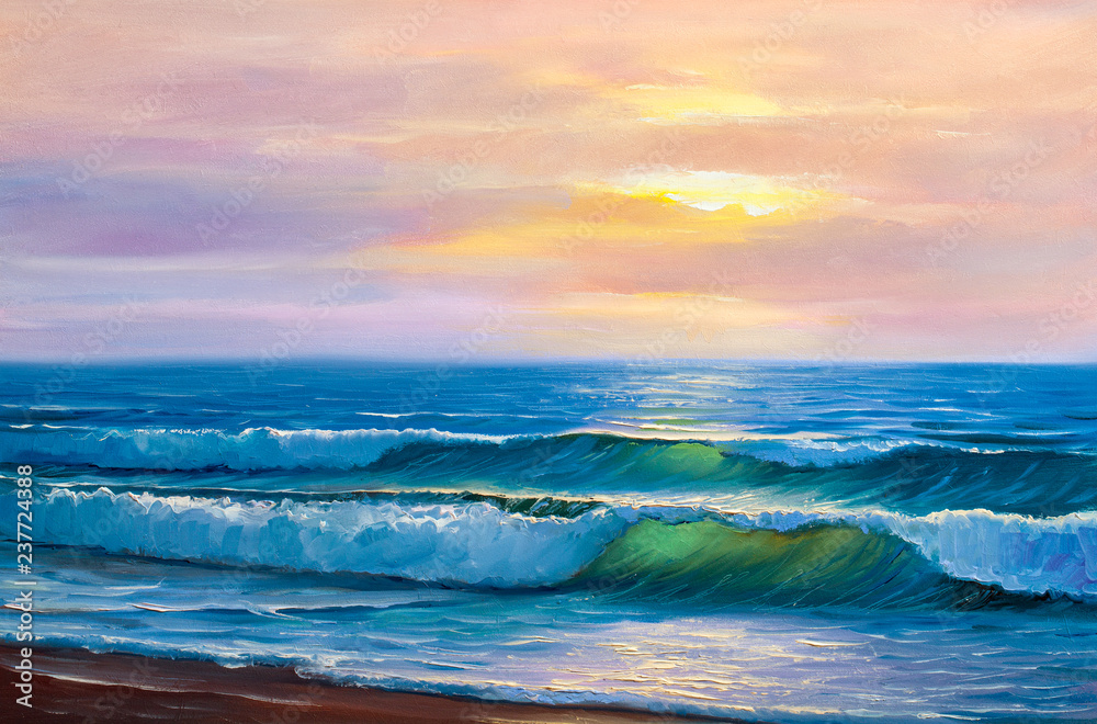 Sunset on the sea, painting by oil on canvas.