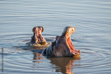 Mother and baby hippo moaning at Masuma Dam (Hwange National Park, Zimbabwe)
