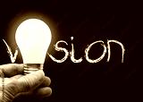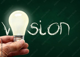 Hand Holding Lighted Bulb With Vision on Chalk Board and Copy Space