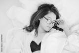 Portrait of Asian sexy woman wearing white shirt, sleeping on the bed. Women lifestyle.