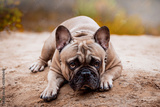Krasivaya sobaka porody Frantsuzskiy bul'dog v lesu 49/5000 Beautiful dog breed French Bulldog in the forest