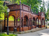 Wooden bower. Mineral spring Magdalena at Szczawnica, Poland.