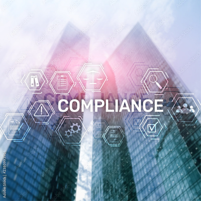 Compliance diagram with icons. Business concept on abstract background.