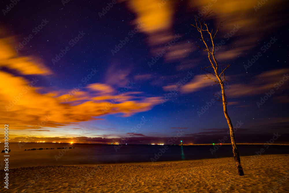 krajobraz nadmorski, nocą na plaży