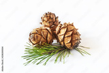 Cones Pinus sibirica or Siberian pine cones on light background