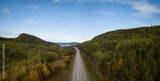 Aerial panoramic landscape view of Bic National Park during a vibrant sunny day. Taken in Le Bic, Rimouski, Quebec, Canada.