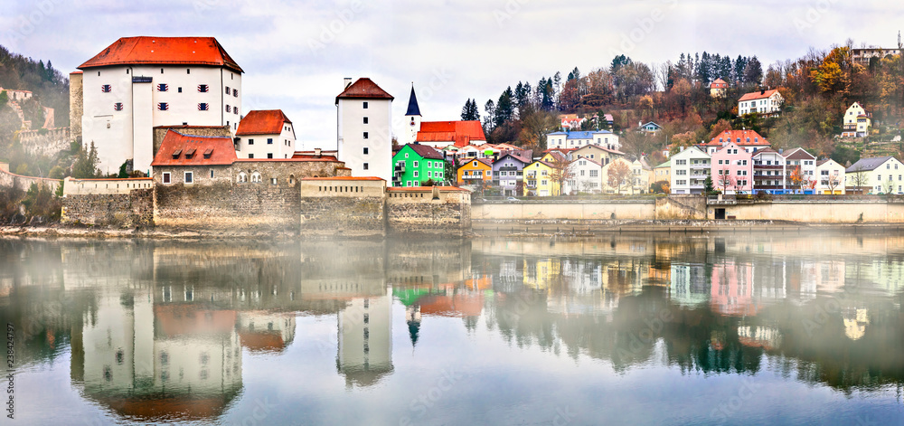 Landmarks of Germany -Passau town over Danube and Inn river, Bavaria