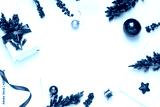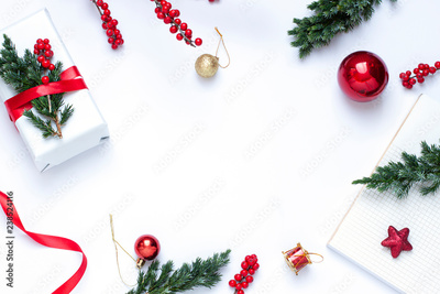 Christmas New Year concept frame on the white background. Top view winter holiday card. Copy Space