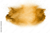 Golden sand explosion isolated on white background. Abstract sand splashing.