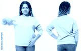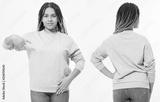 African american girl in template blank sweatshirt isolated on white background showing copy space on clothes. Front and rear pullover view. Mock up and Place for adverising