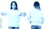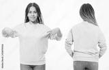 African american girl in template blank sweatshirt isolated on white background showing copy space on clothes. Front and rear pullover view. Mock up and Place for adverising