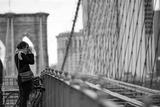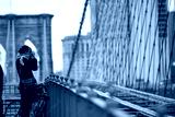 (selective focus) A tourist is taking photo from the famous Brooklyn Bridge in Manhattan, New York, United States.