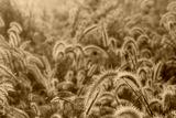 Grass flower in the morning at sunrise with golden sunshine. Flower field in rural. Orange meadow background. Wild meadow grass flowers with morning sunlight. Start new day or new life concept.