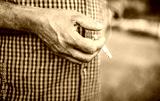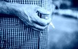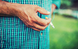 Man hand holding a cigarette, close up photo