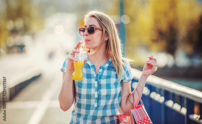 Modern young woman enjoying in shopping. Consumerism, lifestyle concept