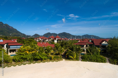 Aerial view of Eden Island Mahe Seychelles. Horizontal shot