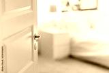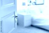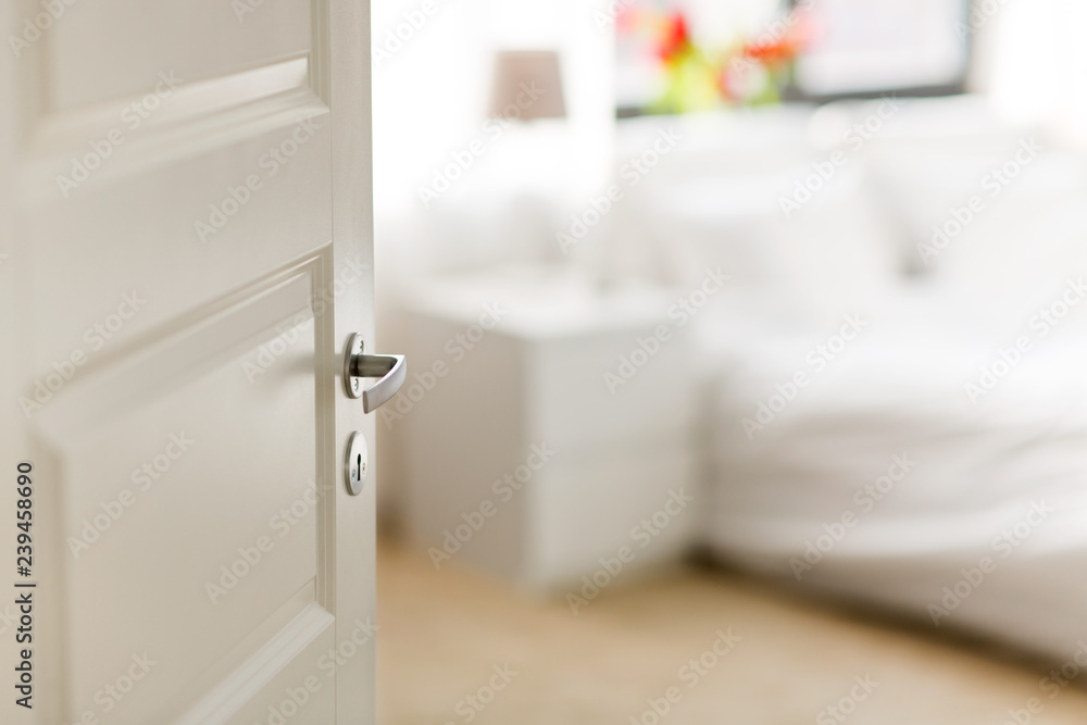 privacy concept - open door in bedroom at home